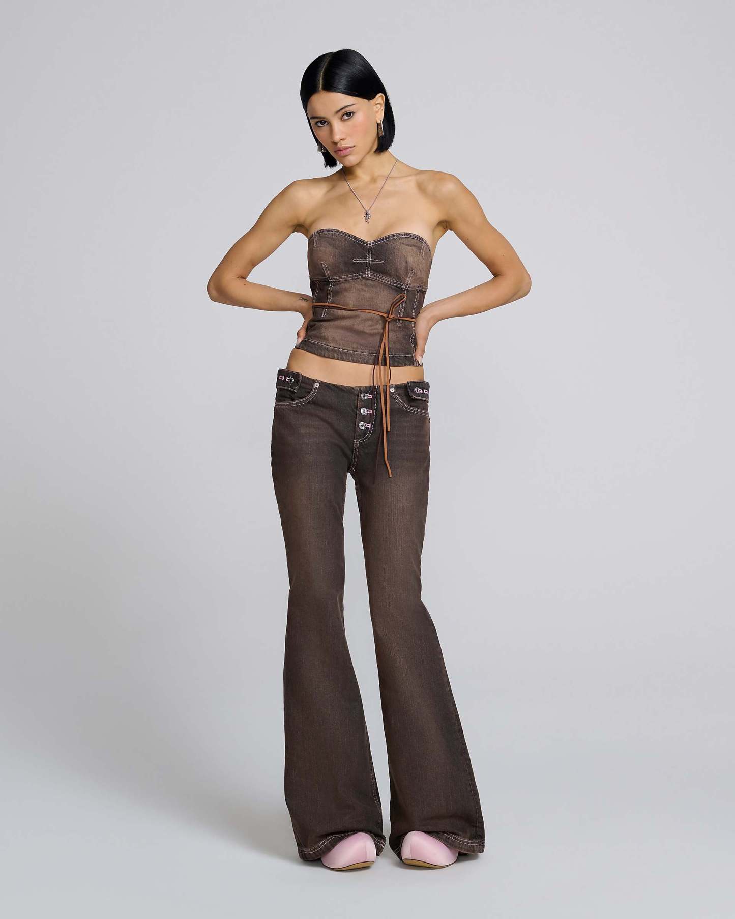 Detached Waistband Flared Jeans