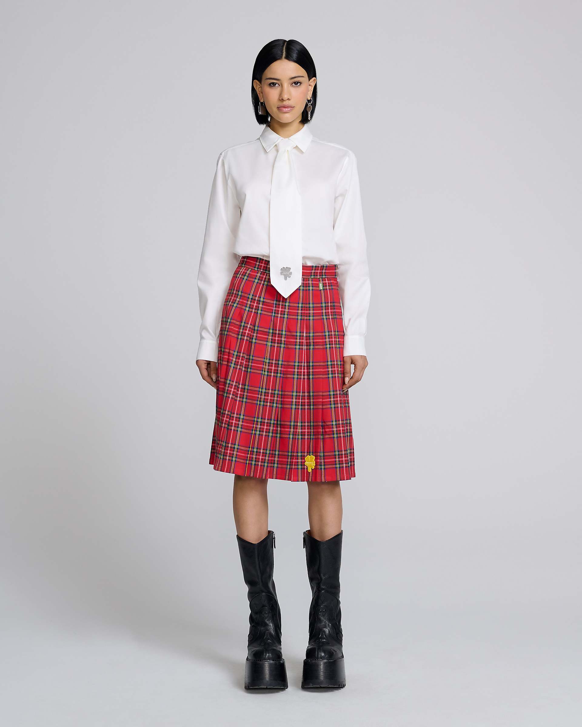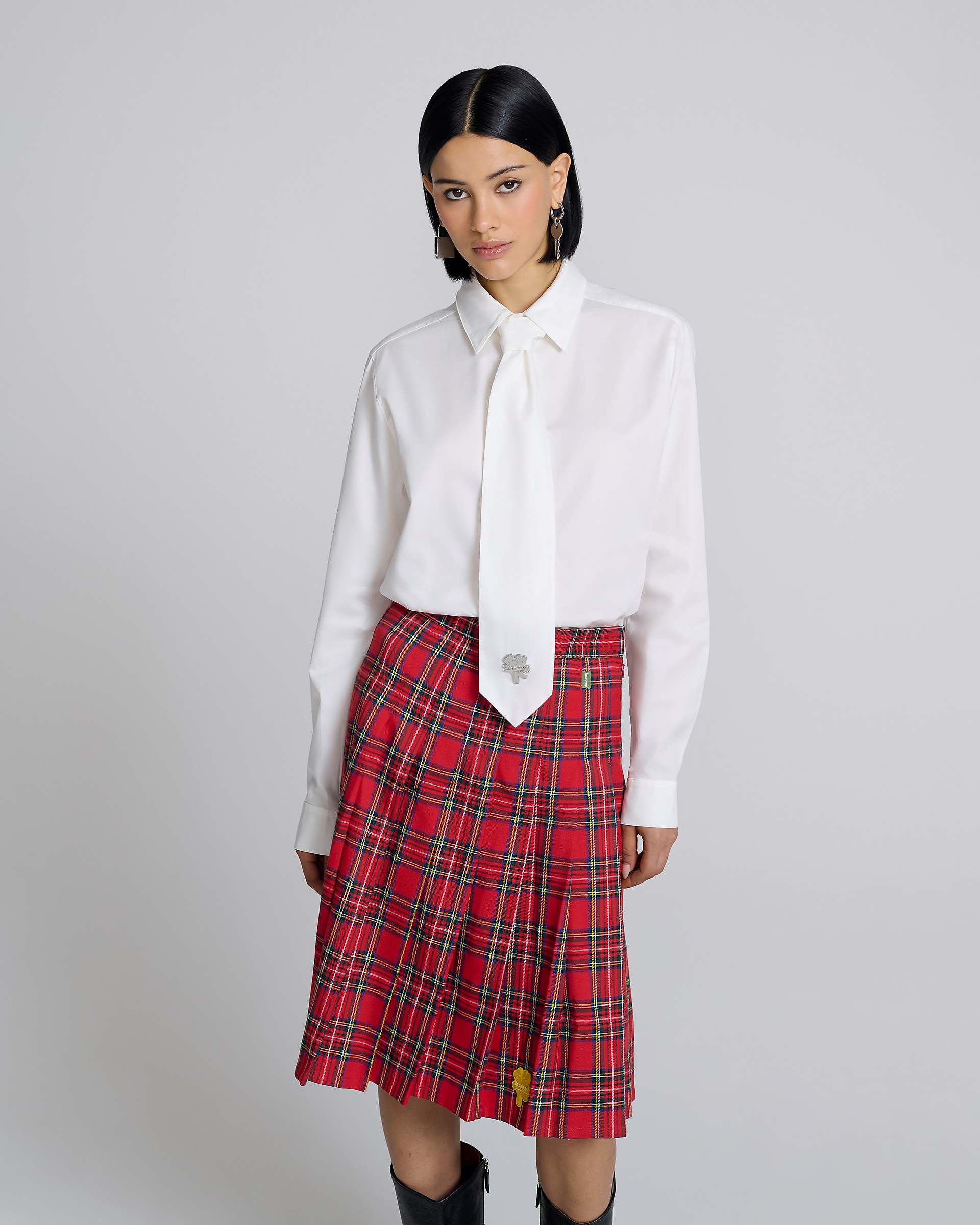 CLASSIC POPLIN SHIRT WITH ATTACHED NECK TIE. HEAVEN EMBROIDERY. DOUBLE HEADED TEDDY METAL PLAQUE Shop Marc Jacobs HEAVEN TIE SHIRT