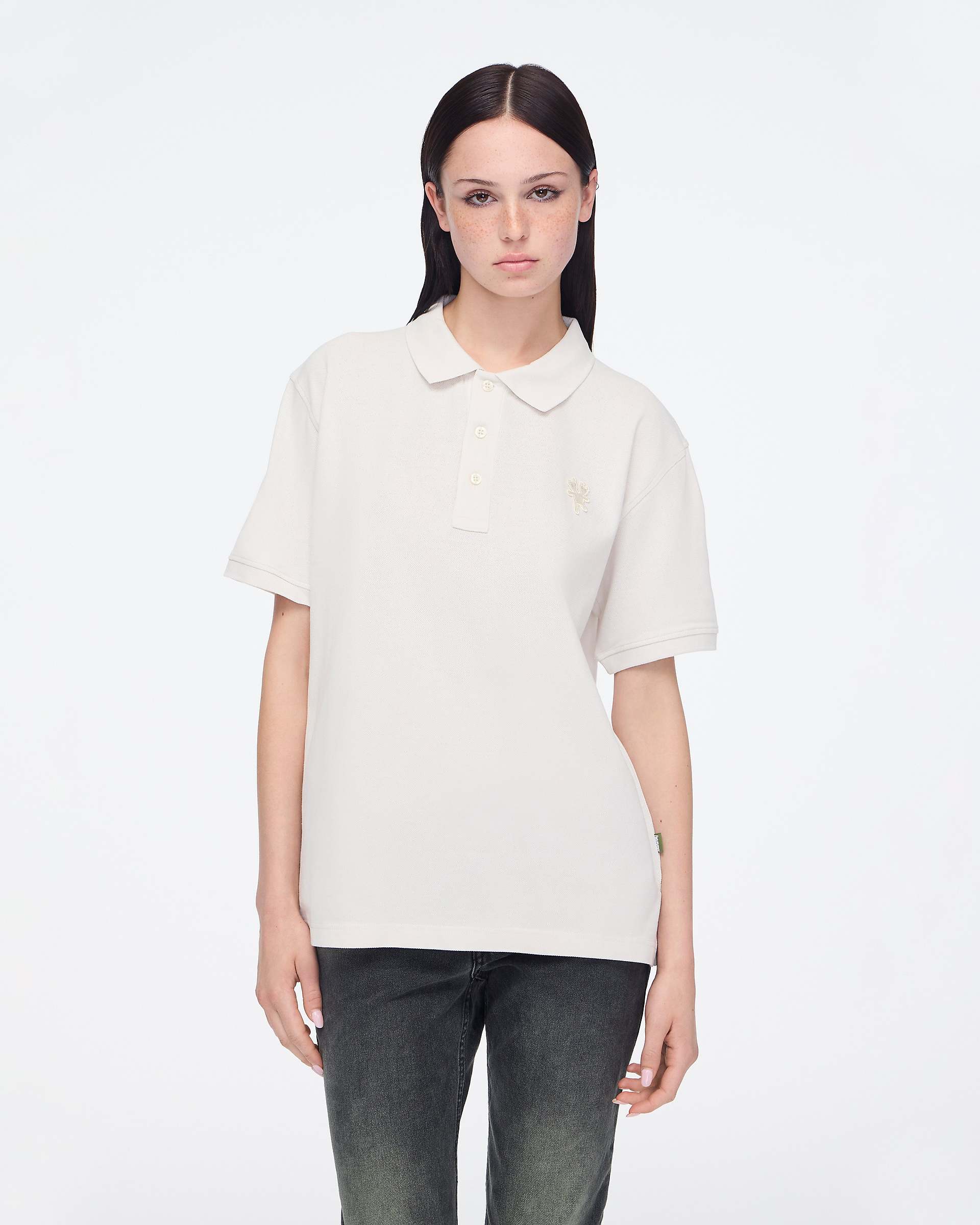 Classic unisex pique polo. Tiny Teddy embroidered patch. Shop Heaven by Marc Jacobs Tiny Teddy Polo.