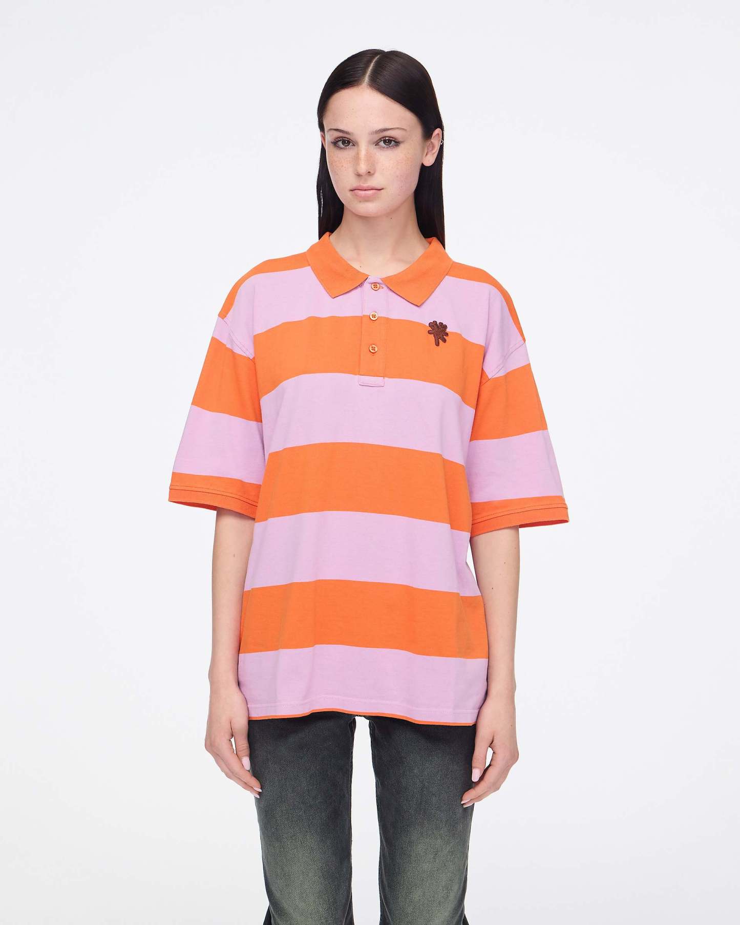 Classic men's jersey polo with tiny teddy embroidered patch. Shop Heaven by Marc Jacobs Tiny Teddy Striped Polo.